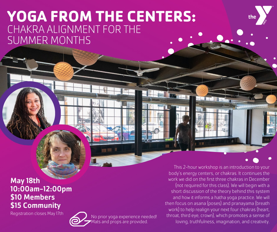 This 2-hour workshop is an introduction to your body’s energy centers, or chakras. It continues the work we did on the first three chakras in December (not required for this class). We will begin with a short discussion of the theory behind this system and how it informs a hatha yoga practice. We will then focus on asana (poses) and pranayama (breath work) to help realign your next four chakras (heart, throat, third eye, crown), which promotes a sense of loving, truthfulness, imagination, and creativity.