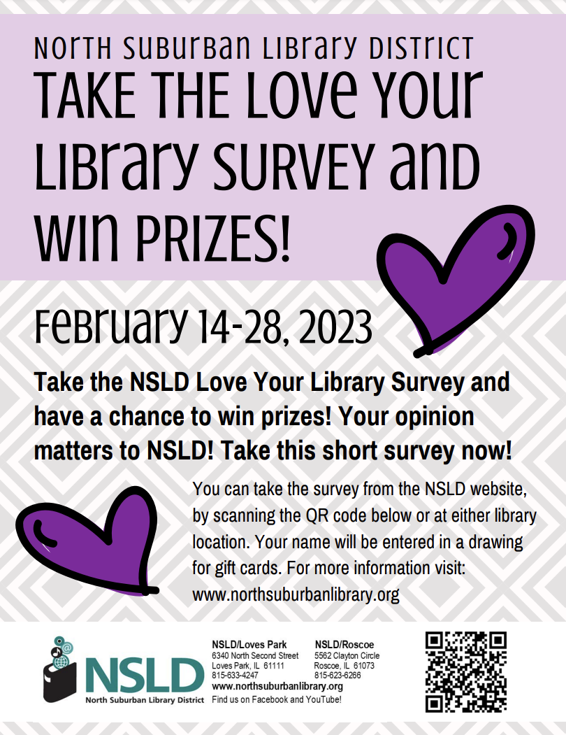 Take the NSLD Love Your Library survey for a chance to win prizes. Your opinion matters to NSLD. You can take the survey by going to the NSLD website here. The survey is available from February 14 – 28.