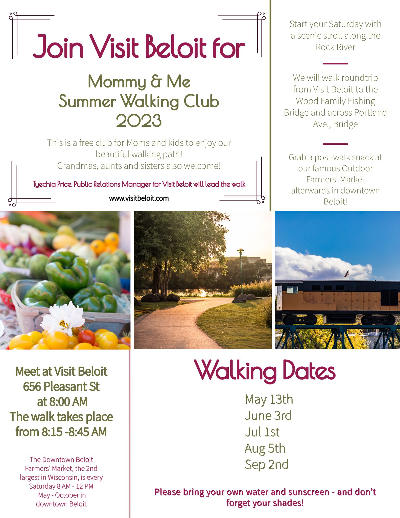 Moms and kids are invited to take a walk led by Tyechia, PR Manager for Visit Beloit on a beautiful walking path.