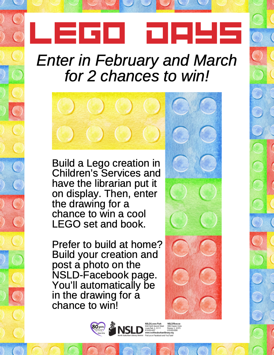 Build a LEGO creation in Children's Services and have the librarian put it on display. Then enter the drawing for a chance to win a cool LEGO set and book. Continue Reading