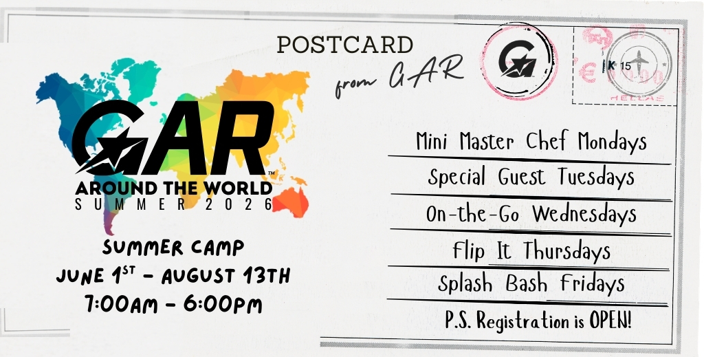 GAR Summer Camp is designed to keep campers active, engaged, and excited for each new day. With our “Around the World” theme, campers will experience fun adventures, creative activities, hands-on projects, and exciting weekly outings all summer long. Led by our Summer Camp Director with over 7 years of experience in youth programs and camps, our team is focused on creating a fun, safe, and well-organized environment for every camper. Each week includes themed activities your child will look forward to:
