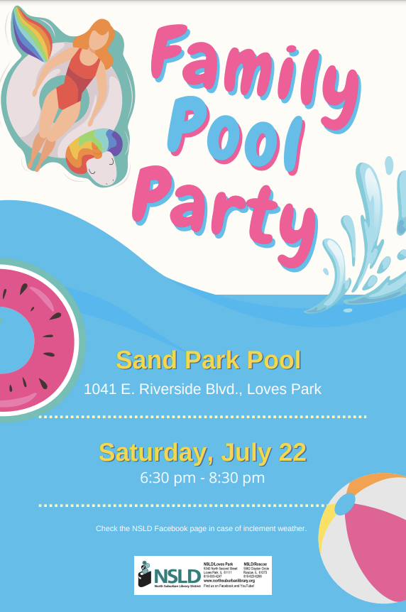 Enjoy an evening of swimming at Sand Park pool in Loves Park. No registration required. All ages welcome.